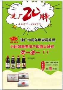 新鄉(xiāng)市甲森調(diào)味品有限公司是一家從事醬油、醋調(diào)味品生產(chǎn)和銷(xiāo)售的企業(yè)。始建于1993年,擁有現(xiàn)代化標(biāo)準(zhǔn)廠(chǎng)房二千余平方米、擁有員工20余名、技術(shù)管理人員8名、生產(chǎn)醬油醋,復(fù)合調(diào)味料的現(xiàn)代化企業(yè)。
